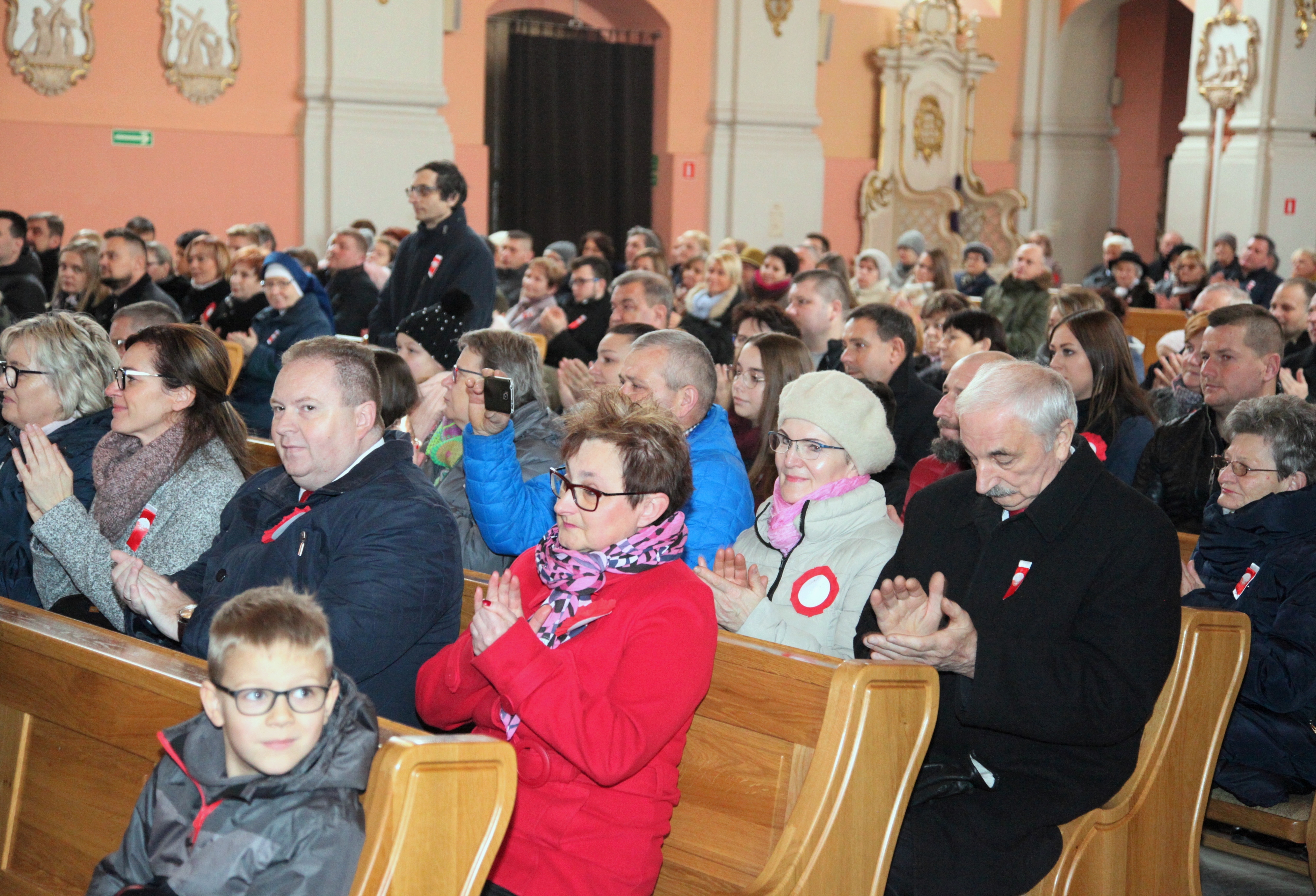 W samo południe, w wypełnionym po brzegi Sanktuarium, uczestnicy uroczystości zaśpiewali Hymn Narodowy po czym Proboszcz Parafii Ksiądz Maciej Grześ odprawił uroczysta mszę za Ojczyznę. Słowa kazania zachęcały do refleksji i zadumy nad losami Ojczyzny.