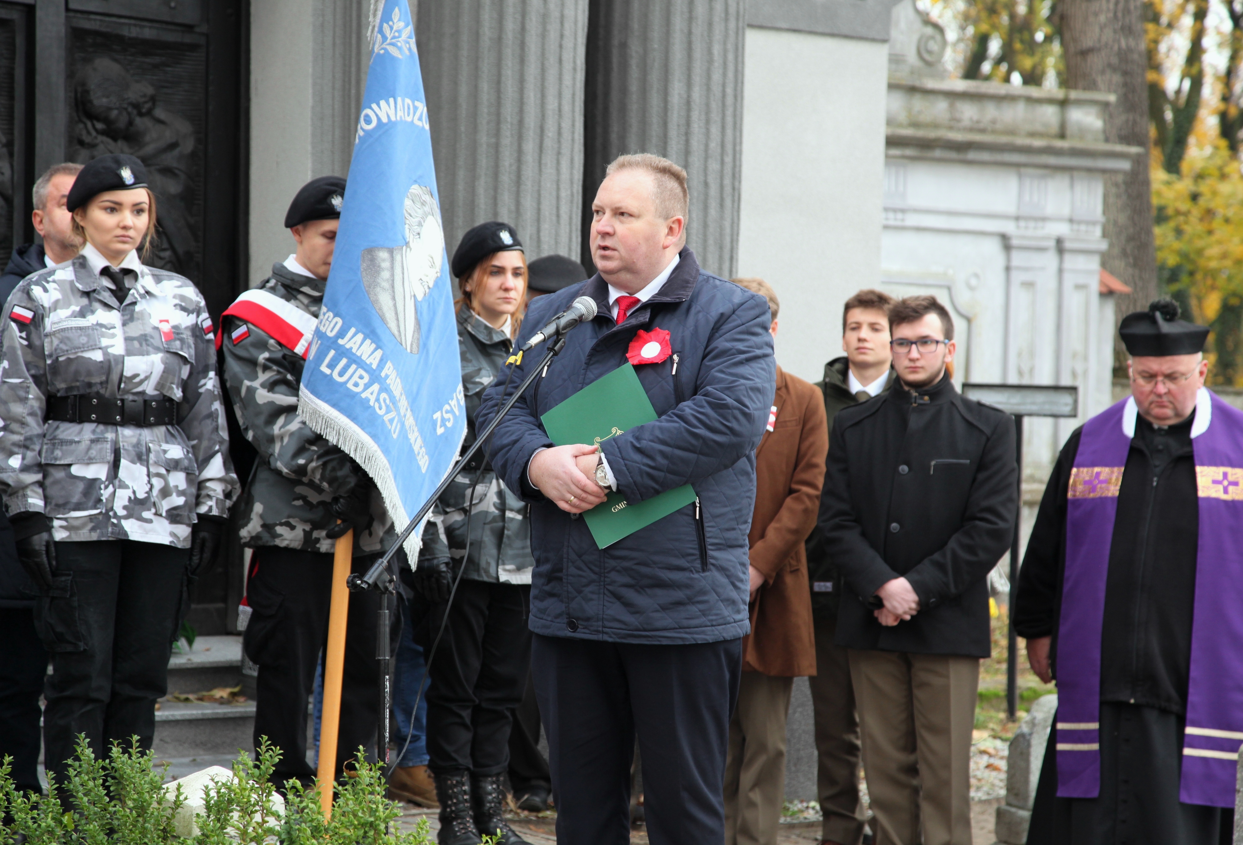 Po mszy świętej poczty sztandarowe oraz liczne delegacje udały się pod Grób Powstańców Wielkopolskich, gdzie złożono kwiaty, ku pamięci obrońców naszej Ojczyzny. W trakcie uroczystości Wójt Gminy Lubasz Marcin Filoda, w krótkich słowach przybliżył genezę suwerennej polski, której losy choć skomplikowane i zawiłe tworzą poruszający obraz.
