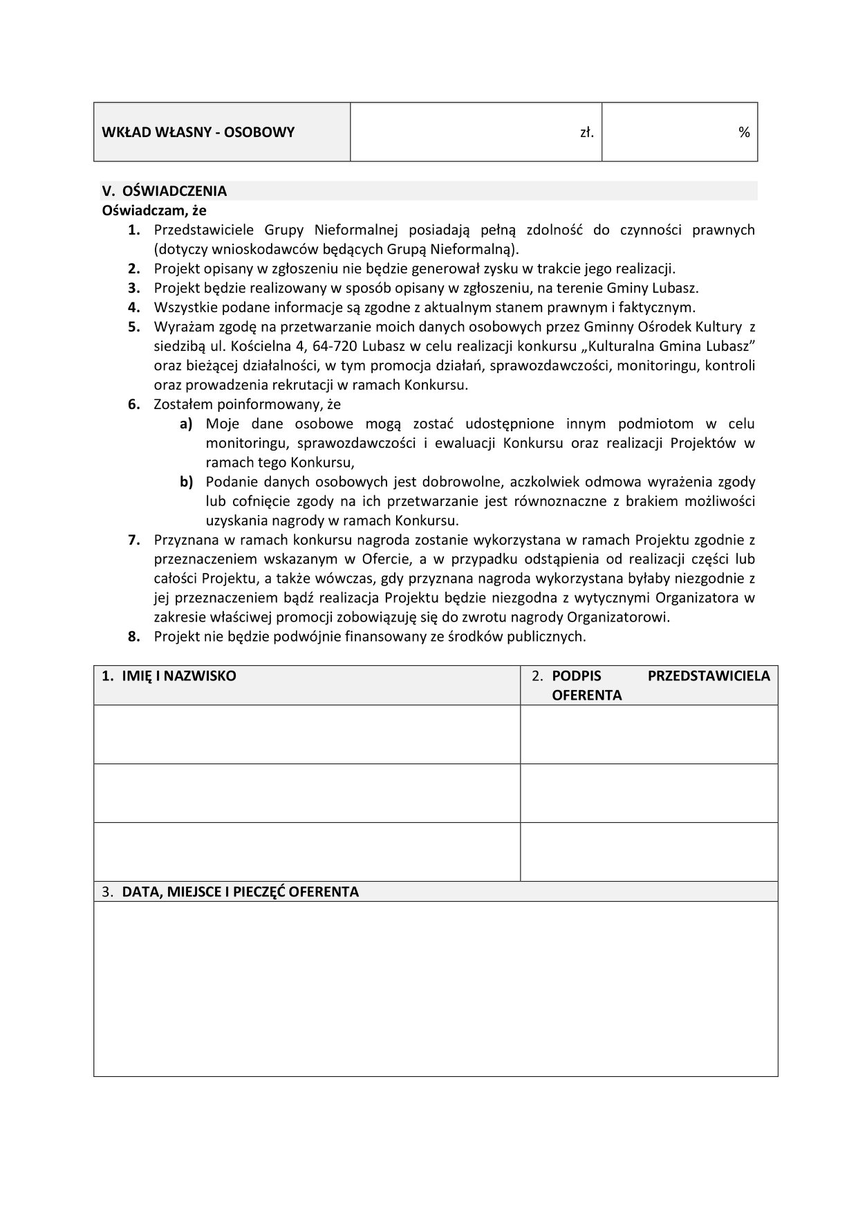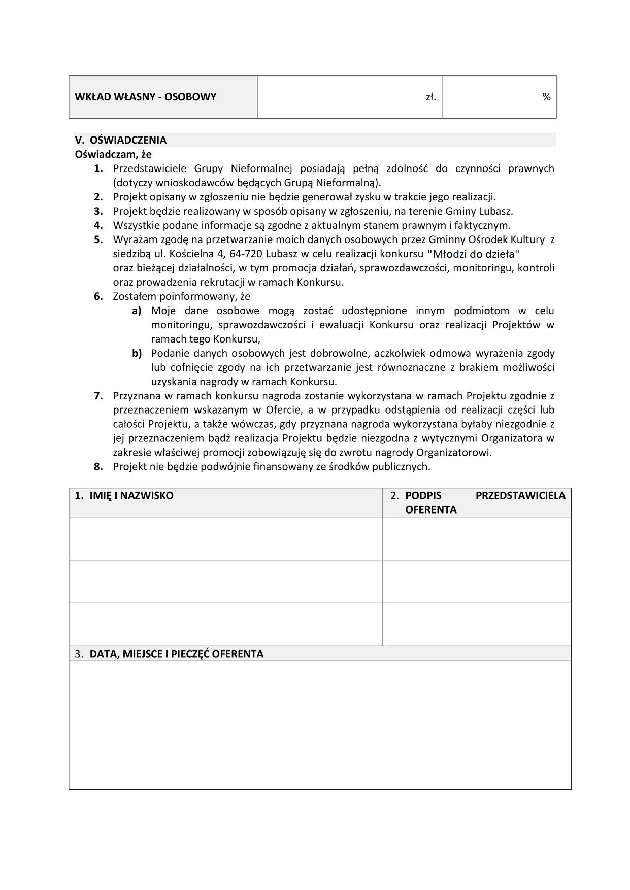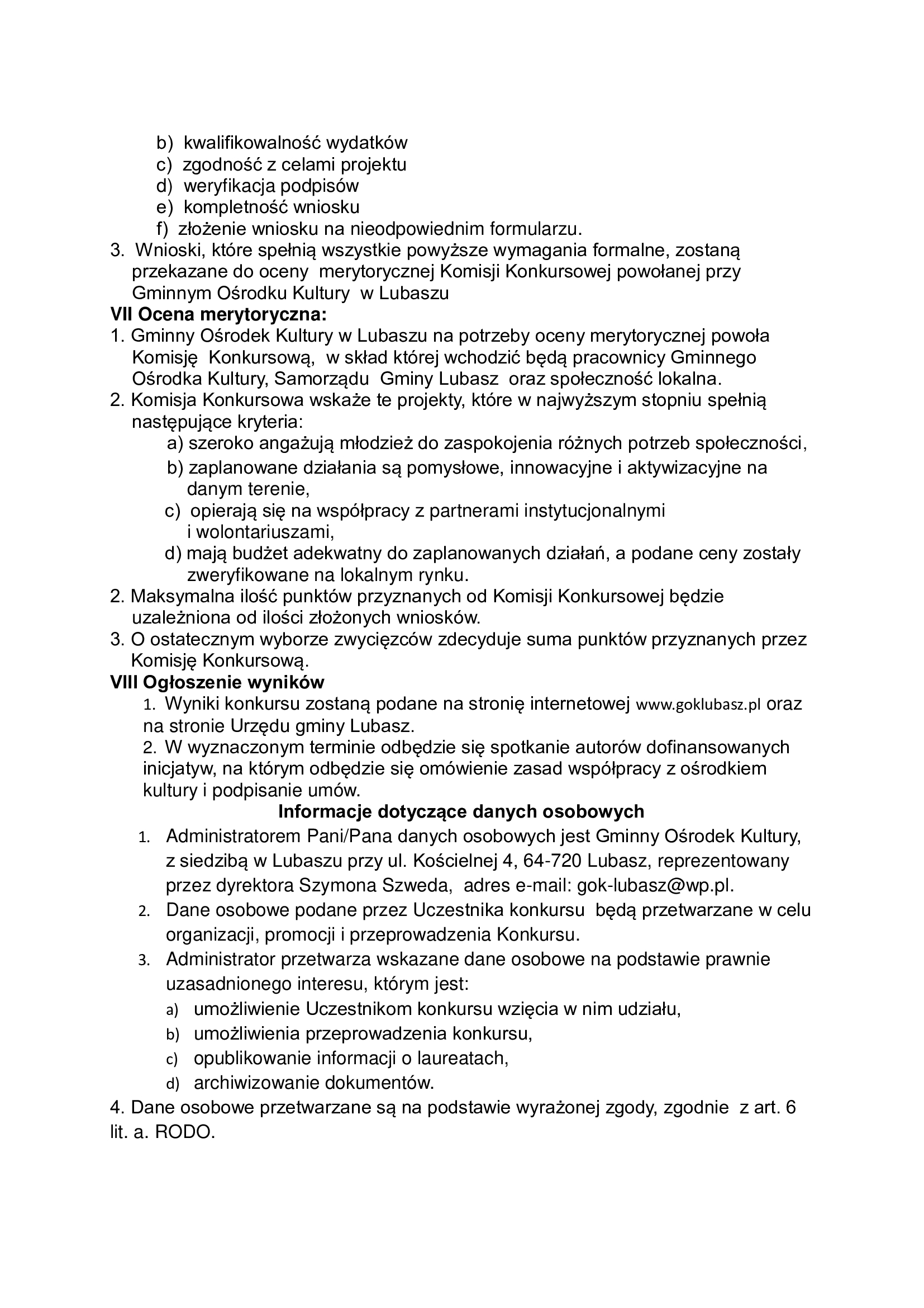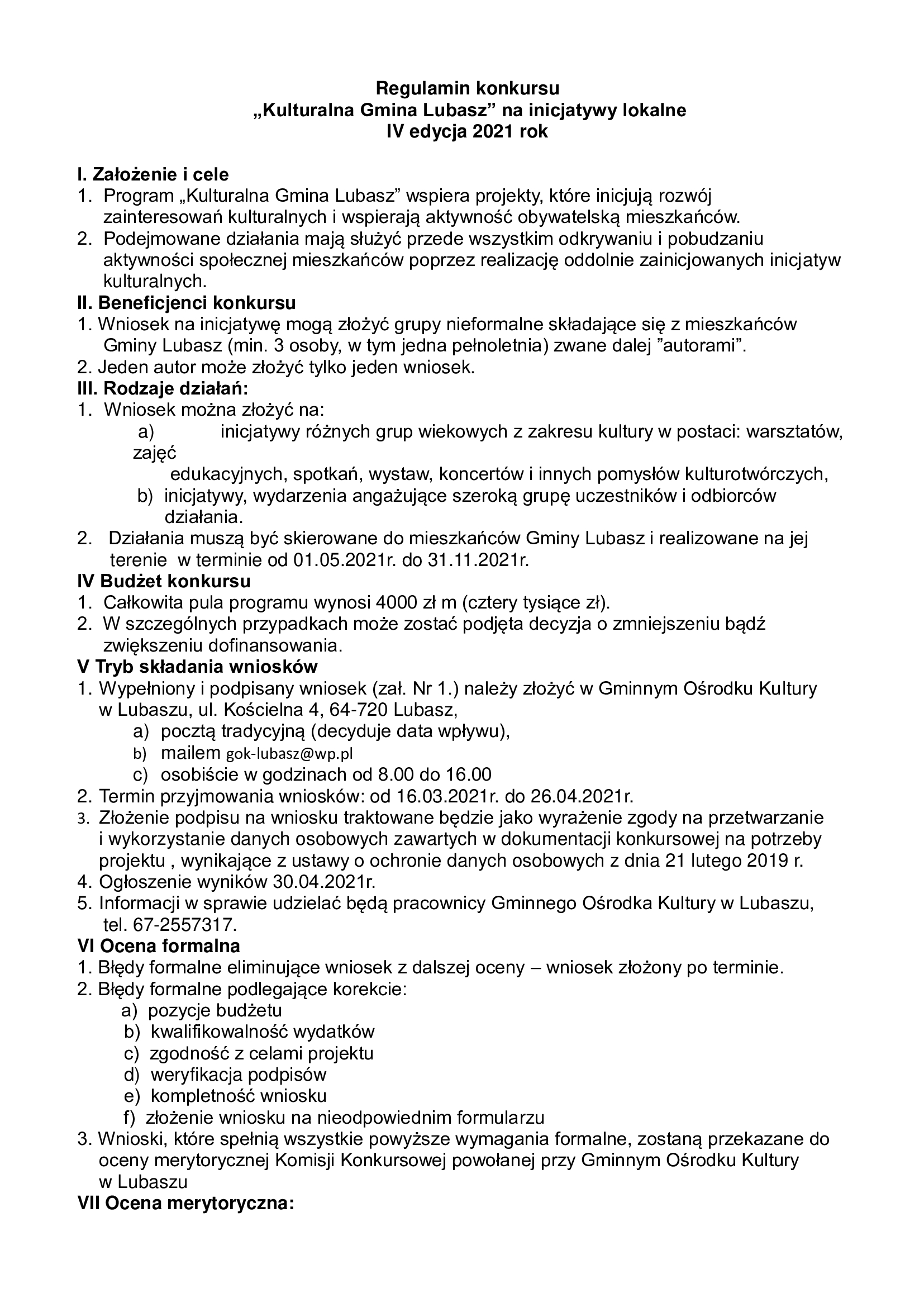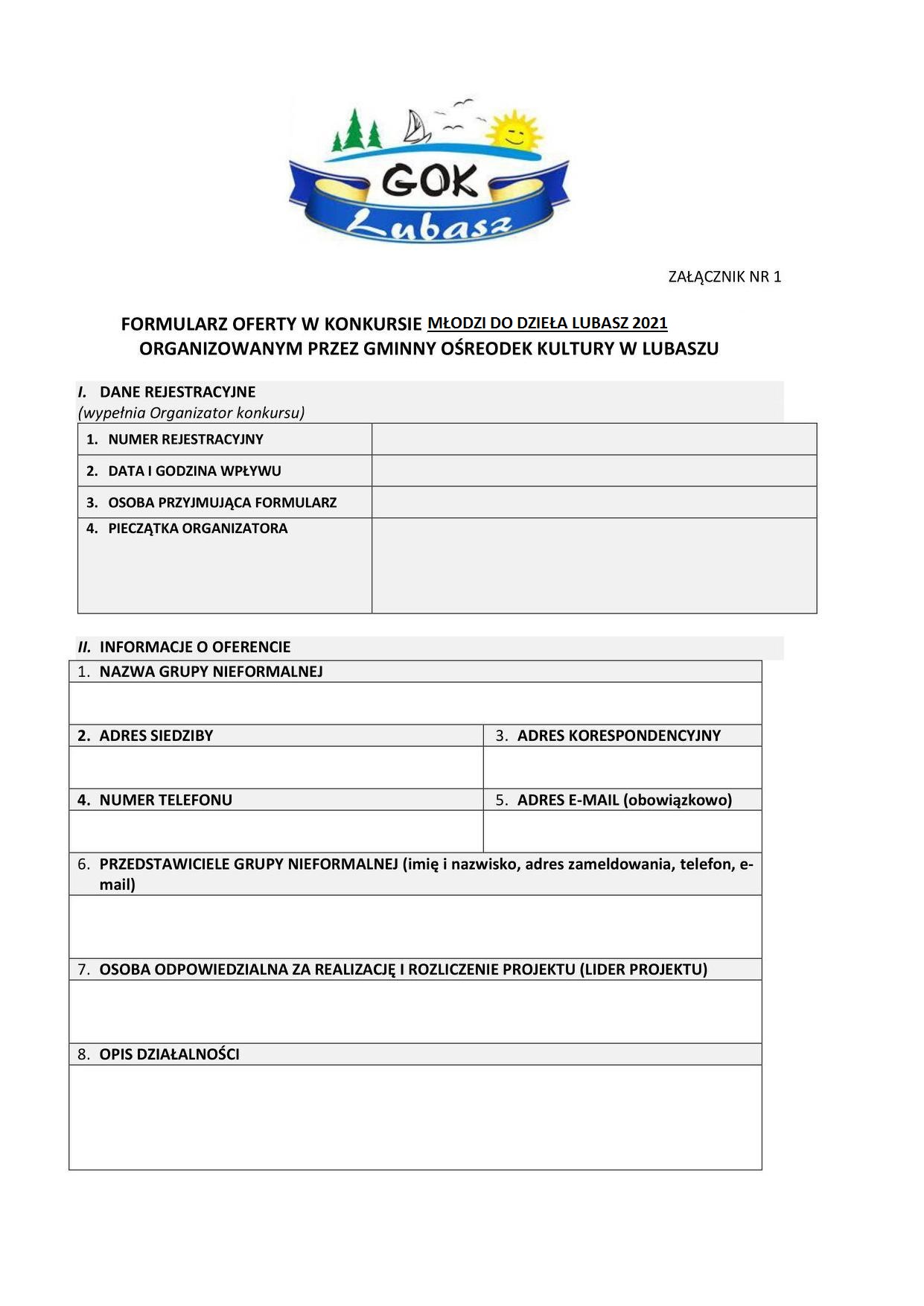podejmowane działań mających służyć przede wszystkim odkrywaniu i wspieraniu oddolnych inicjatyw kulturotwórczych młodzieży i mieszkańców Gminy Lubasz poprzez realizację oraz integrację społeczną.