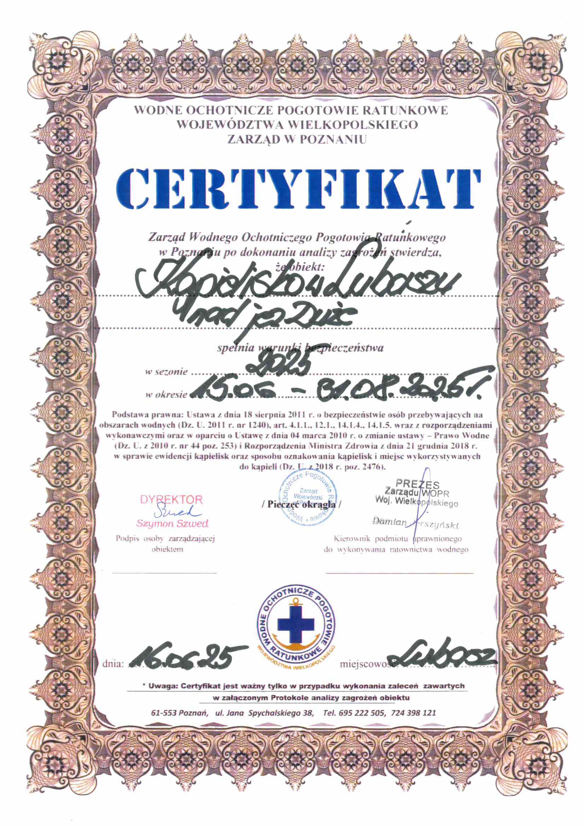 Tradycyjnie w czerwcu odbywa się wizytacja przedstawicieli WOPR Województwa Wielkopolskiego Zarządu w Poznaniu. Nad jeziorem w Lubaszu opiekę sprawują ratownicy z WOPR "Anioły" Trzcianka.