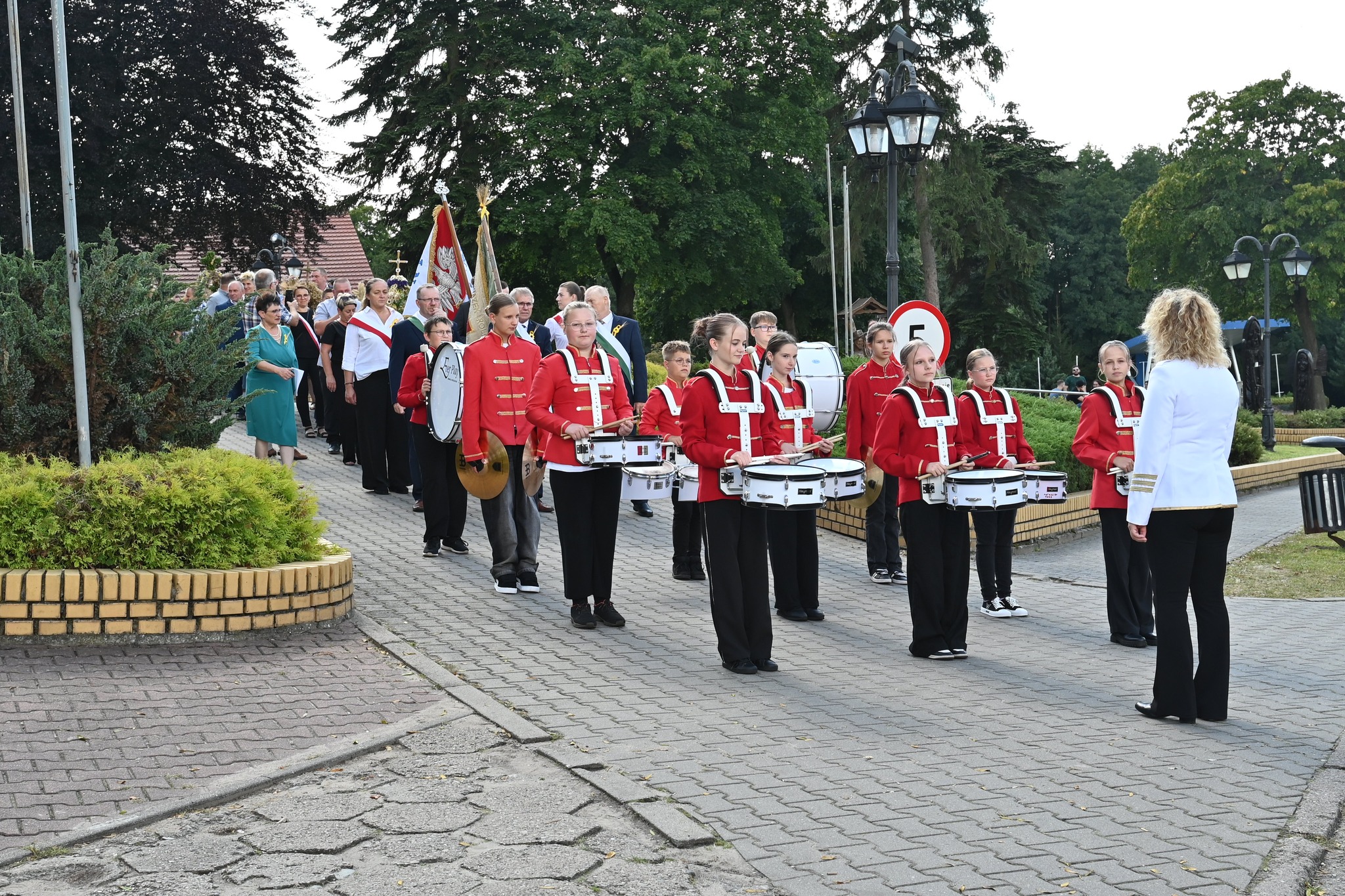 Po części inauguracyjnej barwny korowód prowadzony przez Młodzieżową Orkiestrę Dętą Gminy Lubasz wyruszył w stronę amfiteatru. Orkiestranci swoją muzyką dodali uroku i rytmu przemarszowi, a kolorowe stroje ludowe i pięknie przystrojone wieńce dożynkowe sprawiły, że korowód stał się niezwykłym widowiskiem.